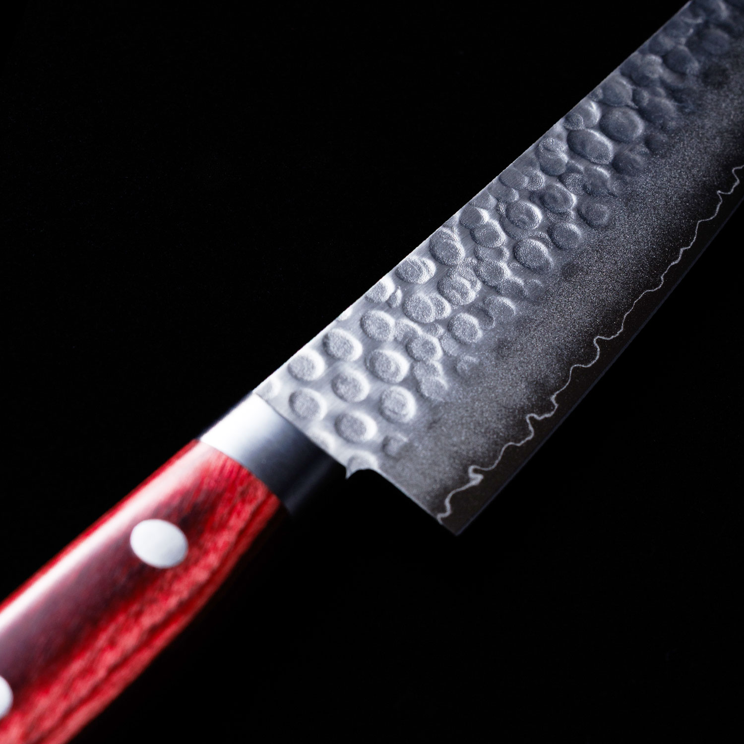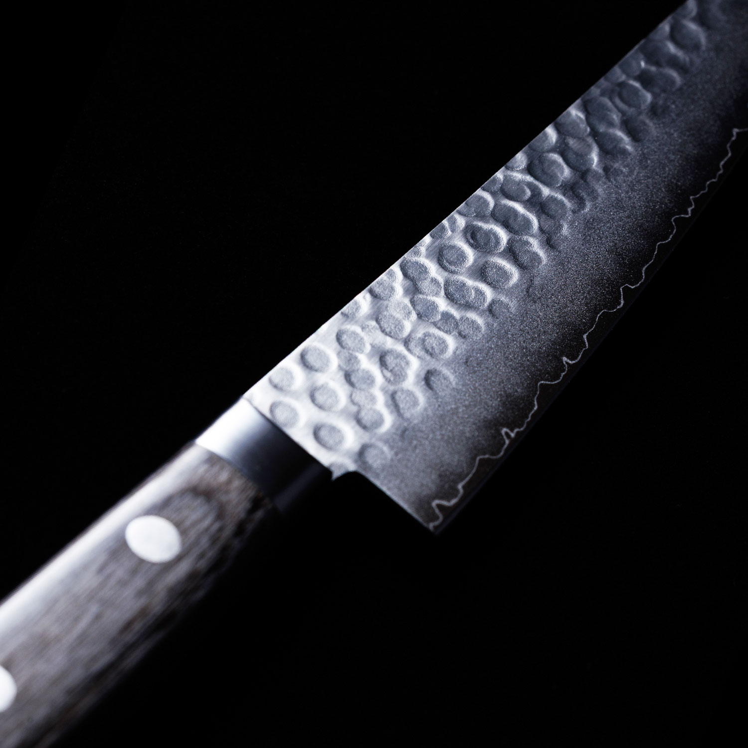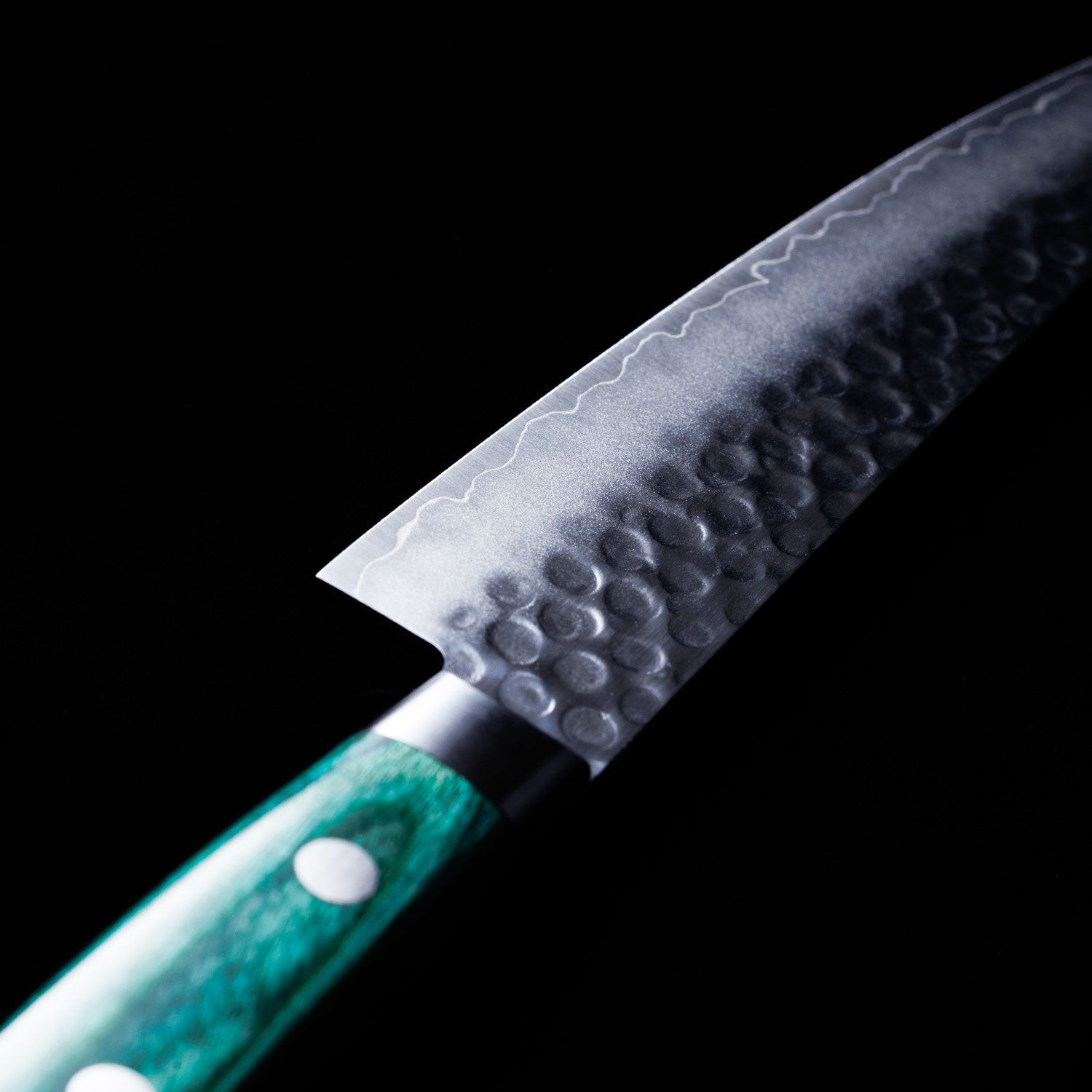 槌目模様を施した高級ステンレス材であるVG10三層鋼のブレードです。