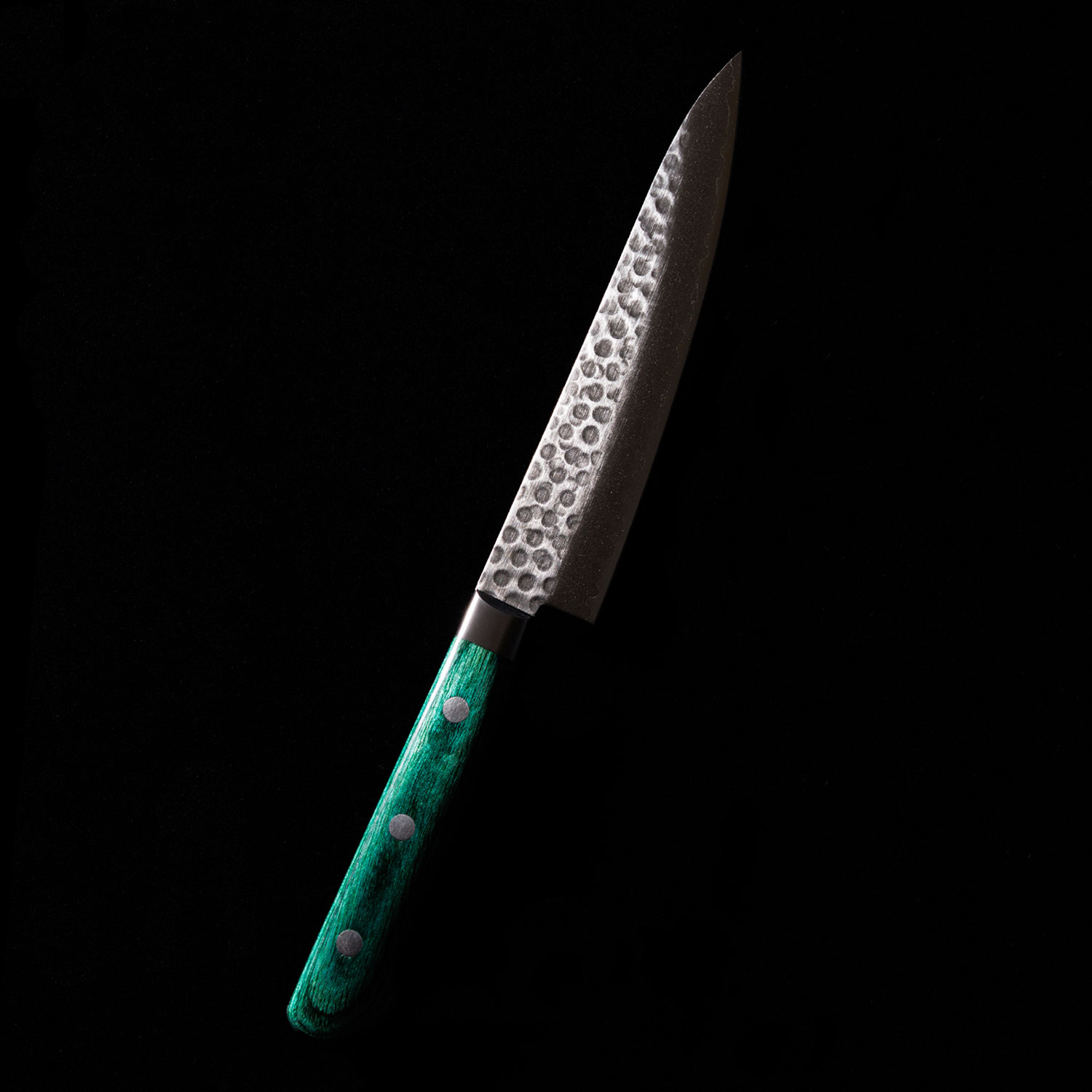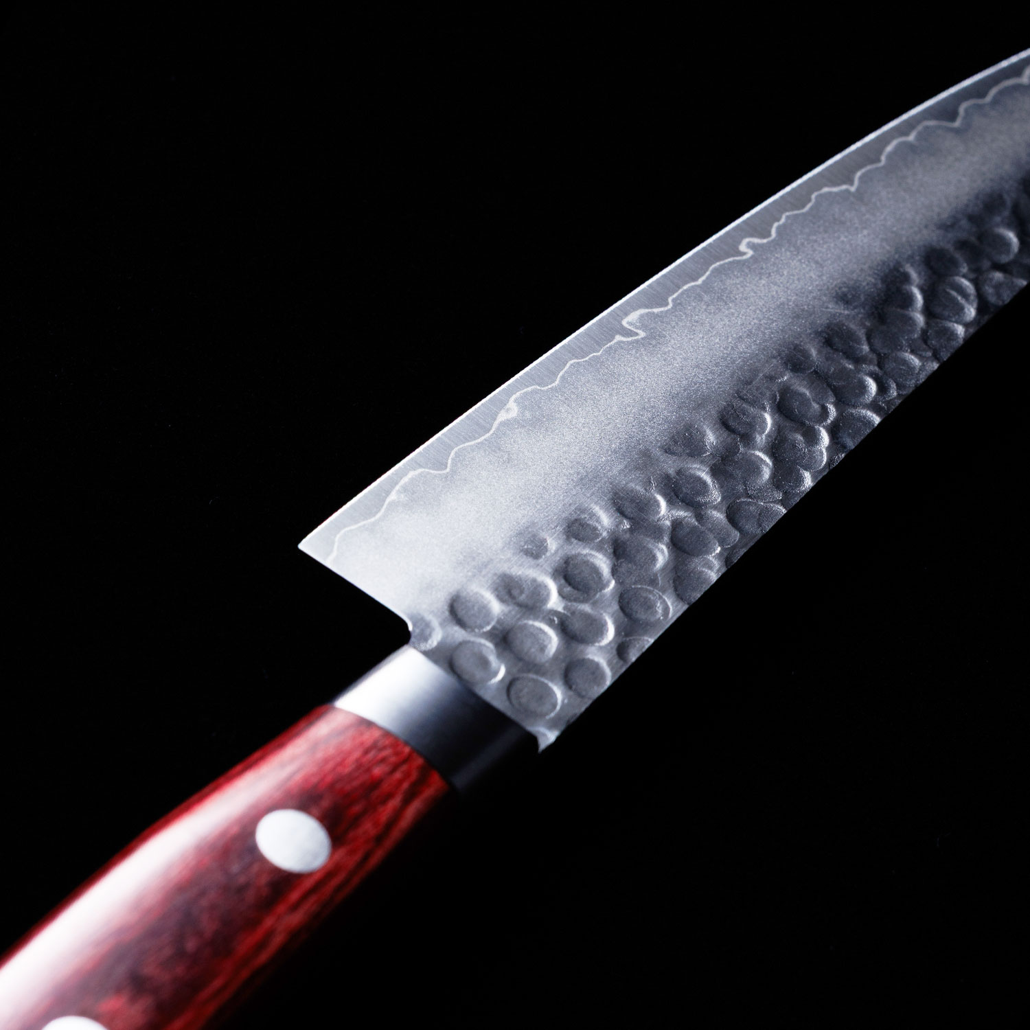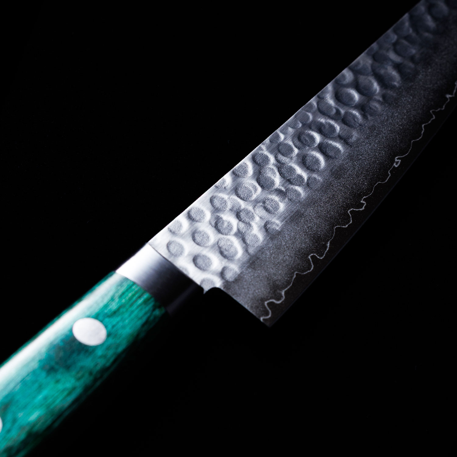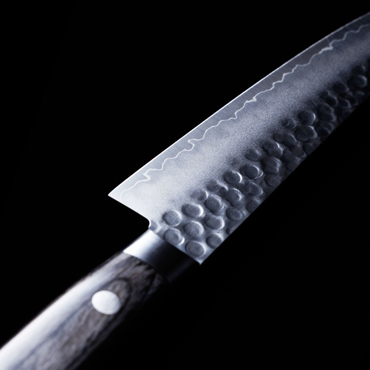 槌目模様を施した高級ステンレス材であるVG10三層鋼のブレードです。